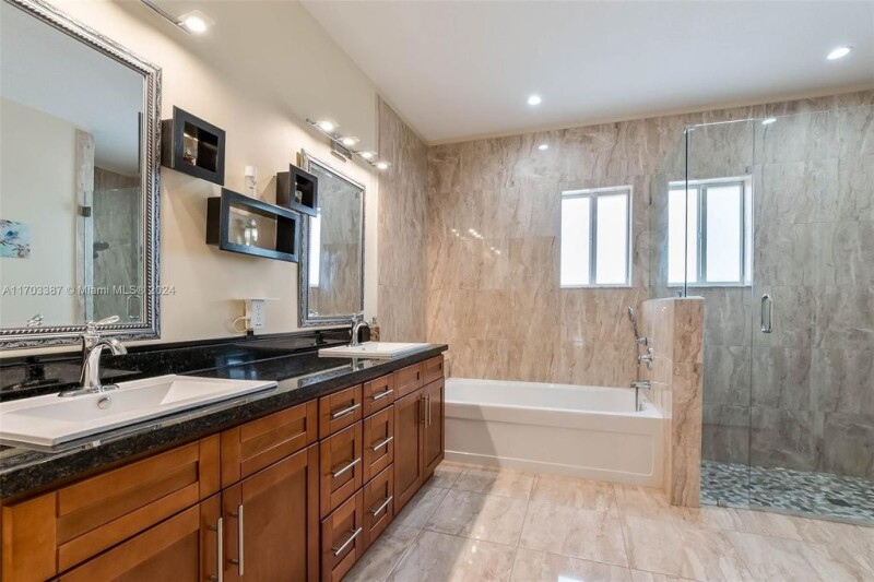 Fantastic 2016-built, 4 bdrm, 3.5 bath home located on a half-acre lot on a quiet cul-de-sac in North Cutler Bay. Formal living & dining rms. Open kitchen features large center island w/ sink & seating, butler’s pantry/coffee bar could be used as a breakfast nook, all adjacent to family rm w/ half bath perfect for guests. Private primary suite w/ large bath & walk-in closet. Ideal yard for entertaining; coral patio, gazebo for summer kitchen, covered terrace & sparkling heated swimming pool w/ lap lane, beach entry/tanning area, hot tub & space for the kids to play. Fenced backyard w/ mango trees, double gate w/ room to park a boat. Impact windows/doors. Indoor laundry rm. Paver driveway. 2 car garage.