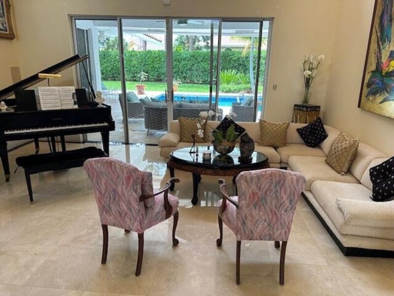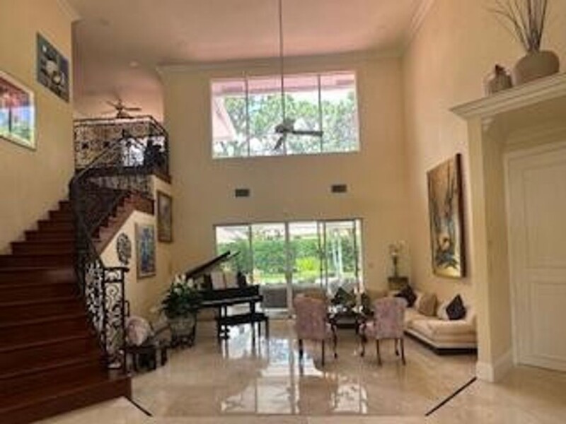 This fabulous Estate home in The Hamptons, the best communtiy in Woodfield Country Club. Magnificent Palm Trees lining the Circular Driveway lead you to the Entrance. Open the Front Door to 22' high living room that fills the house with light & air. The living room opens to a large marble patio, covered loggia and oversized pool. Play soccer in this Enormous Fenced Back Yard . Updated Gournet Kitchen with high end Appliances overlooks the large familyroom with bar going out to the pool area. The first level Primary Suite with sitting room overlooks the patio. The Primary Bath has dual sinks, separate shower and roman tub. A staircase invites you to the second story which has 3 beds/2 baths, Loft & Deck. Newer 3 zone A/C . Credit for impact glass $60,000.