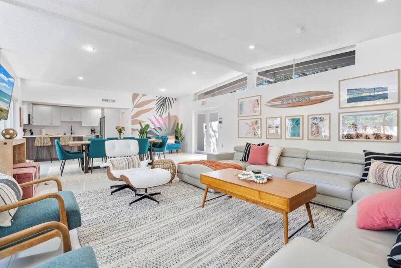 Spectacular Airbnb home with 5 bedrooms and 4 full baths. Gross income of $175K in 2024. Ideal vacation rental, listed on vrbo and airbnb. Open floor plan with high ceilings allow natural light throughout. Gorgeous 24 x 24 porcelain flooring, beautifully remodeled open kitchen and quartz countertops. Brand new roof. Oversized 30ft inground pool and ample room to entertain. Relax outside by the pool with bbq and gas fire pit. Beaches, great dining, shopping/Aventura Mall and recreation spots easily accessible for effortless living. Close to worship centers and top rated schools. Minutes to I-95. Can be used as a turn-key, short term rental complete with all City rental permits. Home sold fully furnished!.