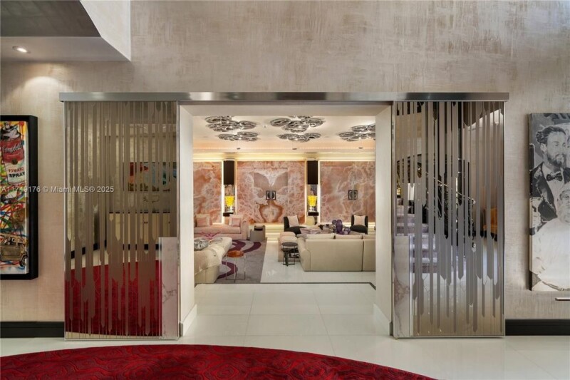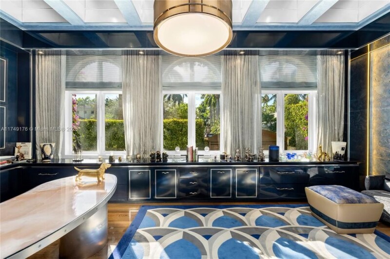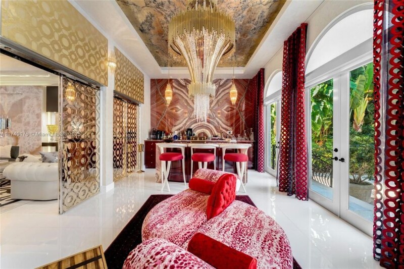 Prepare to be swept away by architectural artistry as this 13,924 SF estate on Sunset Island II debuts on the market for the first time ever. Embrace an opulent lifestyle with 9 beds, 9.5 baths, and a grand 2-story guest house. Uniquely crafted with a rose onyx living room, a Napoleon red marble speakeasy bar, chef’s dream kitchen with walk-in freezer, a regal dining hall, stunning custom walls, and an elevator. The generous primary suite features a private office, sitting area, a wet bar, and a private balcony with water views. An entertainer’s paradise with a bougainvillea-lined courtyard, fountain, summer kitchen, pool with spa, and 100' of waterfront with a private dock. This estate truly speaks for itself as a once-in-a-lifetime opportunity in a prime Miami Beach neighborhood.