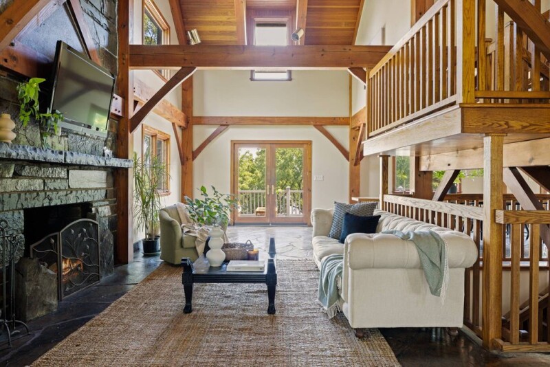 The epitome of waterfront living at 567 4-Mile Point Road in Athens, NY. This three-bedroom, three-and-a-half-bathroom post and beam home offers unparalleled luxury, privacy, and stunning views of the Hudson River. Nestled at the end of a scenic and quiet road, the property abuts state land and a bird sanctuary. The interior of this home is a masterpiece of design, exemplifying the elegance of post and beam construction. The main level features radiant heated stone floors quarried in South Africa. A striking floor-to-ceiling stone fireplace creating a grand ambiance. Adjacent to the living space is a formal dining area with two sets of French doors opening onto an expansive deck, flooding the home with natural light and providing breathtaking sunrise views of the Hudson River. Opposite the fireplace, a gourmet kitchen that is a chef's dream. It's equipped with top-of-the-line appliances, a sleek new Invisicook countertop, custom cabinetry, and pantry offers ample storage and aesthetic appeal. The second floor of the home offers a primary suite featuring a spacious bathroom and fireplace that adds warmth and elegance. In addition, two bedrooms with river views and a guest bath. The crowning feature, the third-floor crow's nest with 360-degree views. The lower level includes an additional living space, full bathroom, a large bedroom room or office space, and french doors leading out to a covered patio and grounds. Once outside you discover a private fenced oasis. Tiered massive stonewalls surrounded by mature flowering trees, a waterfront peninsula, and a breathtaking fountain with a cascading waterfall. This stunning feature has the potential to be transformed into a luxurious pool by the next owner, offering endless possibilities for outdoor enjoyment. The property boasts plenty of waterfront for the future owner to dock or moor a boat. Located a short distance from Hudson, Albany, Saratoga Springs, and the Catskill Mountains, offering cultural, dining, shopping, and outdoor activities aplenty. Commuters will find the location convenient, with the Amtrak station in Hudson offering service to NYC. Private airports in the region also support air travel, and New York City is just over two hours away by car, balancing rural peace with urban accessibility.