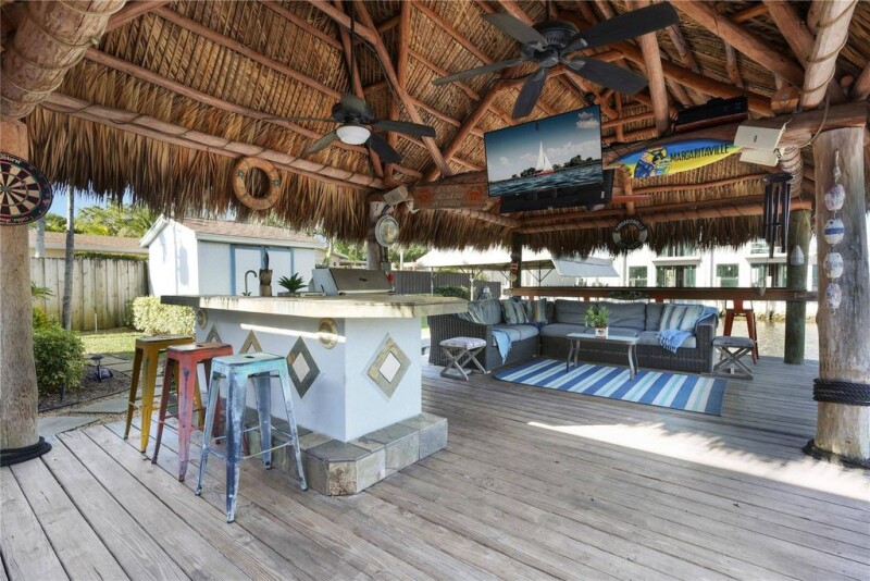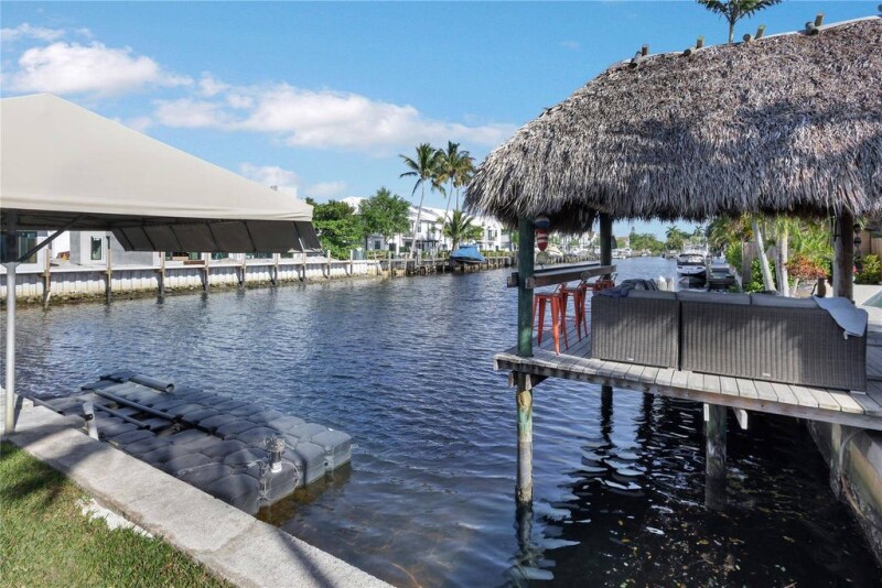 Waterfront Living with OCEAN ACCESS & 171’ Dock. No Fixed Bridges. Updated 4 bedroom 2 bath home with 2 car garage. Your private oasis backyard with boat dock for all your water toys, shed, resort style tiki hut with built in BBQ, TV’s & speakers for entertaining or relax at the pool & enjoy the water views. Step inside & enjoy the cozy fireplace, plantation shutters, central vac, remodeled kitchen with wood cabinets & quartz countertops, wood like floors throughout. Home has a professional security system, outdoor landscape lighting, impact windows & doors & is on a quiet cut-de-sac with no HOA or Rental Restrictions. Call today for a showing!.