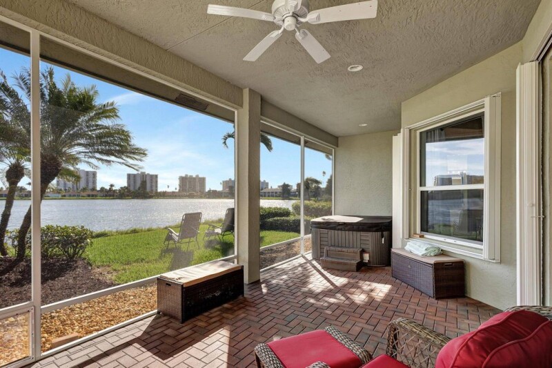 Nestled amidst a serene lakeside between the river and the ocean, this spacious courtyard home offers a tranquil retreat. With three bedrooms, three baths, and a two-car garage, this home exudes comfort and convenience. The all-white kitchen is a chef's delight. High ceilings throughout enhance the sense of space, while offering spectacular views of the lake and its natural surroundings. The main bedroom suite, featuring a tray ceiling and a cozy study/sitting area, provides a peaceful escape with sliders leading to the spacious screened lanai.