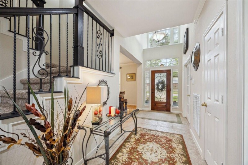Welcome to your dream home nestled in the center of Cinco Ranch! This beautiful property boasts a nice wooded lot and a large front yard, perfect for outdoor activities and relaxation. Step inside to discover a spacious family room with an entertainment center and vaulted ceilings, creating an inviting atmosphere for gatherings. The formal dining room is ideal for hosting dinner parties, while the study with French doors offers a quiet space for work or reading. The primary suite is a true retreat, featuring two walk-in closets and a luxurious bathroom with a jacuzzi tub and separate shower. Upstairs, you'll find a game room perfect for entertainment and leisure. Additional features include: Sprinkler system and sodded back yard for easy maintenance. Plantation shutters downstairs. New fence, new roof and wrought iron gate!.