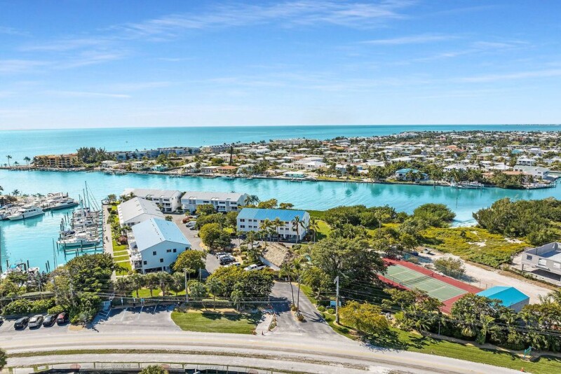 This stunning, oceanfront, desirable end unit townhome in the exclusive Bonefish Yacht Club community offers a perfect combination of luxury and resort-style living. The 34-unit complex of single family, attached townhomes is nestled on 4+ acres of meticulously maintained tropical landscaping exuding the charm of a private, oceanside retreat. This property conveys with a 40' legal, liveaboard boat slip with deep water, direct ocean access.