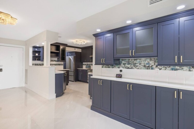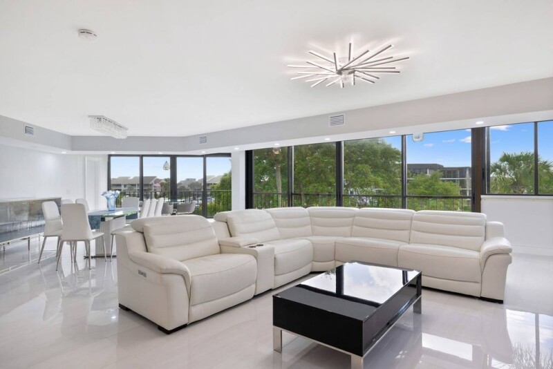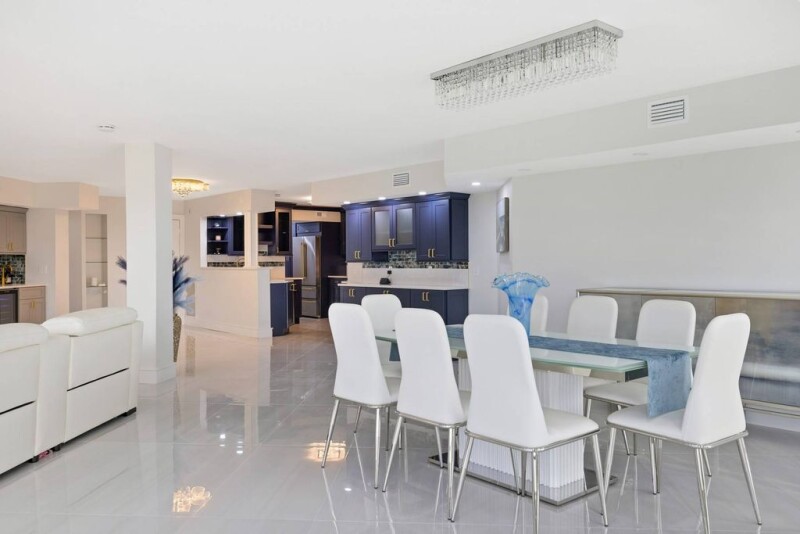 This completely remodeled residence is the only double unit featuring 3800-plus AC square feet and lives like a single-family home. The light-filled interior features porcelain tile floors, new electric fireplace in the living room and wrap-around floor-to-ceiling sliding glass impact resistant doors offering views of the pool and the river/marina. 4 spacious bedrooms with walk-in closets and 3 beautifully updated baths. The chef’s kitchen features high-end appliances and quartz counters, plus a walk-in pantry. Community amenities include a resort-style pool, deeded beach access, and tennis courts.