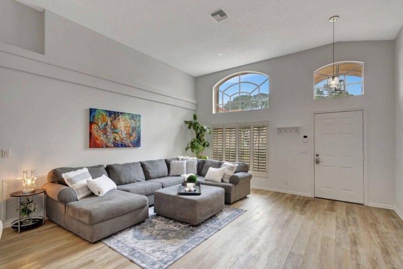 LIKE NEW!!! This home has been updated to BRAND NEW STATUS including a new ROOF (2022), beautiful new main level baths (2023) new Kitchen and all appliances (2023) Full house Generator (2024), tankless water heater (2024), New A/C (2019), New Pool Heater (2024). An enclosed loft added a 5th bedroom or enclosed office. There are TWO bedrooms on the main floor and three additional bedrooms on the upper level. The kitchen has been enlarged and beautifully remodeled with stainless appliances, quartz countertops, soft close shaker cabinets +++. The garage is air conditioned and insulated to keep it nice and cool during our hot summer weather. Total hurricane protection, accordion shutters. See floor plan & list of renovations.