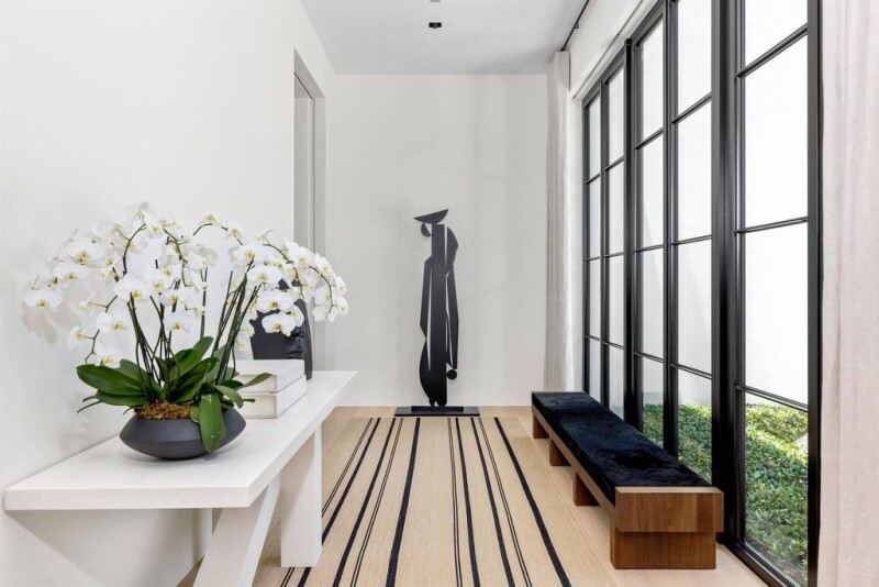 Striking and refined Classical Modern one-story estate built in 2016. 6BR/6.3BA, 12,914+/- SqFt home with separate guest house beautifully designed around interior courtyard. No detail has been overlooked in this spectacular custom estate. Perfect for entertaining with expansive living spaces including formal living room with fireplace, formal dining room, and billiards room. Highlights include library, office, home gym, and family room. Estate features exceptional energy sustainability with 200+/- solar panels hidden and surrounded by rooftop gardens. Inviting outdoor spaces include dining patio and fantastic loggia, rooftop lounge, cabana, and 55'+/- lap pool with sun shelf and spa. Soaring 15'+/- ceilings in the living room and 14'+/- ceilings throughout. 12'+/- steel frame.
