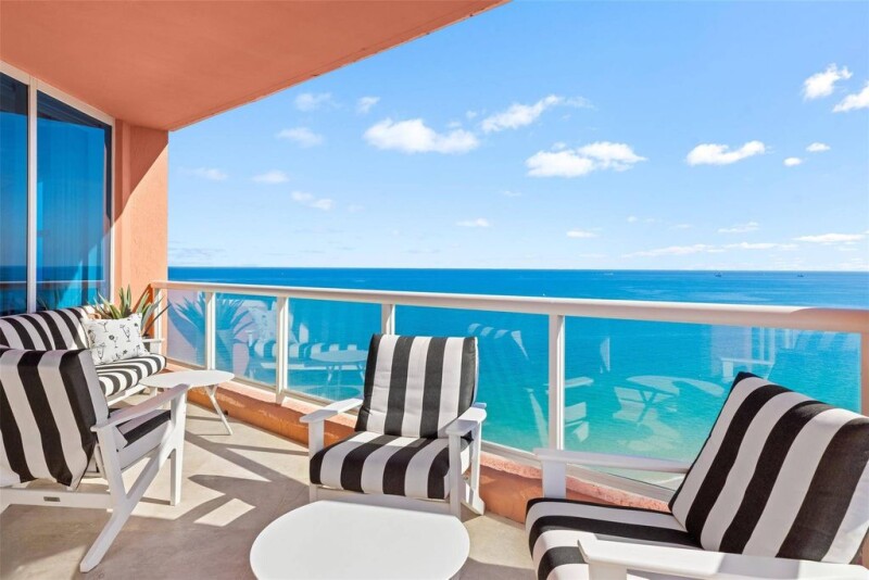 Perched on the 21st floor, this stunning, designer-decorated Florence floor plan at The Palms offers breathtaking wraparound views of the ocean, Intracoastal & city skyline. A flow-through layout w/windows all around, this home is bathed in natural light, showcasing the beauty of SoFlo from every angle. Entertain in the open-concept kitchen, designed for style & function. Step onto 2 private terraces to take in spectacular sunrises & sunsets while enjoying the ocean breeze. Lg Primary suite boasts a luxurious spa-like bath & grand walk-in closet, spacious guest bed and den provide additional comfort & flexibility. Indulge in 5-star resort amenities, including full beach service, 2 pools, world-class gym, tennis, squash, racquetball courts, grand Club Room, 24-hour valet & gated security.
