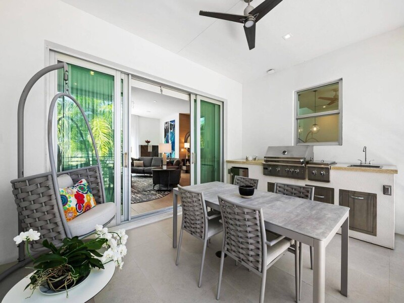 Welcome to this exquisite townhome, where luxury meets tranquility. This residence features two primary suites, including one on the 1ST floor, each with walk-in closets and dual sink vanities. With three bedrooms and three-and-a-half baths, this home emphasizes comfort & functionality. Step outside to a private oasis with a screened-in patio, outdoor kitchen, and private pool. Natural light floods the living spaces, enhanced by sliding glass impact doors and windows. A private elevator ensures easy access to all floors. The custom kitchen delights with designer cabinets, elegant countertops, and premium appliance package. Highlights include large ceramic tile floors, glass railings, and stunning ceiling details with designer light fixtures.(FURNITURE NEGOTIABLE). Sq Ft based on BCPA.