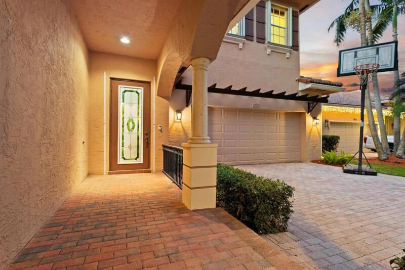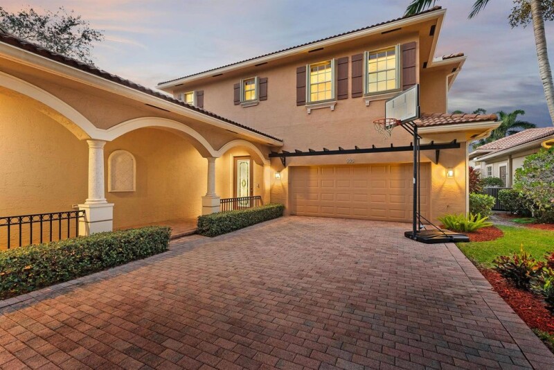 Don't miss out on this beautifully maintained, Belvedere Model. This home is 4 bedrooms/3 baths and is located on a large, corner lot. The covered, wrap around porch overlooks a natural preserve on a quiet street in the highly sought after neighborhood of Paseos. Features include pecan wood flooring in living and dining room, wood plantation shutters, granite countertops, stainless steel appliances, crown and architectural molding. The upstairs windows have accordion shutters for convenient storm protection and panels for downstairs windows and doors. Paseos has a wonderful community clubhouse with a pool, tennis/pickleball courts, sidewalks, playground, and a nature trail through the preserves. Centrally located in the heart of Jupiter near great dining, shopping, and highway access.