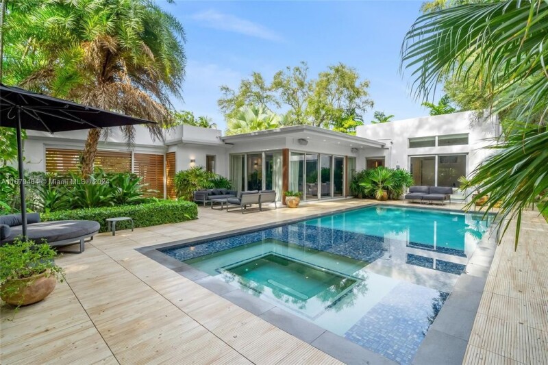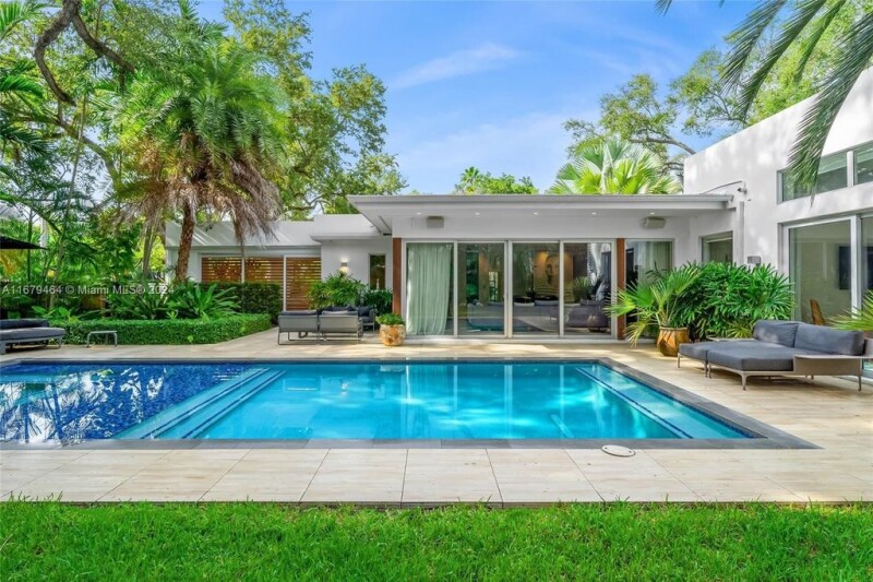 Discover a mid-century modern gem nestled in North Coconut Grove, where luxury meets comfort. This stunning 5 BD 5.5 BA home designed by Maurice Weintraub Architects and gut renovated by Architect Ralph Tait spans nearly 3500 SF and sits on a rare 13,375 SF lushly landscaped Double Lot. Recently renovated, it boasts exquisite Everest white and Carrara marble floors, brand new chef's kitchen with top-tier appliances, high ceilings & a spacious primary suite featuring European white oak floors and vaulted ceilings. The backyard offers a large pool with sunken spa, covered cabana with summer kitchen and bathroom, and a putting green. Conveniently located close to top schools , highways and the best shopping and dining that both Coconut Grove and Brickell have to offer. A rare find & must see!.