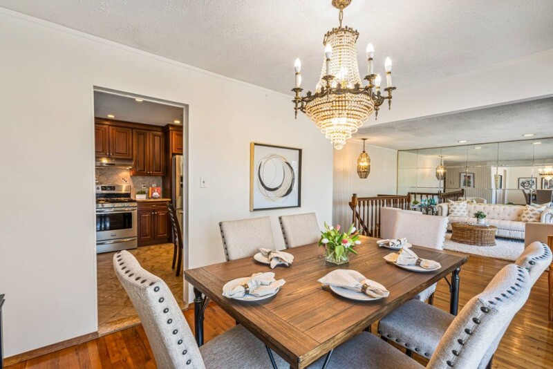 Welcome to this warm and inviting Hi-Ranch in the sought-after Rockwood Park section of Howard Beach. A double-door entry opens to a gracious foyer, leading upstairs to the main living space. This sunlit level features a spacious, open living room and dining area, creating the perfect layout for hosting holidays and entertaining. The updated eat-in kitchen boasts granite counter tops and stainless-steel appliances, providing both style and functionality. The primary bedroom includes two closets and a recently updated bath, plus two generously sized bedrooms and a full bath. The lower level offers exceptional additional living space, including an updated summer kitchen, bedroom, family room, full bath, laundry and access to 1-car garage. Sliding doors lead to a fenced backyard with a brick patio, provides the perfect space for outdoor enjoyment. Situated on a picturesque street, this home offers the perfect blend of comfort and convenience. Close proximity to shopping, dining, and transportation.