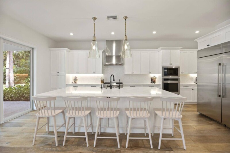Custom coastal-style family home on prestigious Pennock Point in Jupiter. Set on a tranquil, almost an acre private lot, this custom residence--completed in 2020--offers a perfect blend of timeless design and modern luxury. With 4 bedrooms, a dedicated office, and an oversized 3.5-car garage, the home is thoughtfully laid out for both everyday living and entertaining.Inside, premium wide-plank, weathered wood flooring, intricate custom millwork, tongue-and-groove vaulted ceilings, and elegant tilework create an inviting and sophisticated ambiance. The chef's kitchen seamlessly connects to the spacious family room and features a full-size refrigerator and freezer, dual dishwashers, a gas range, double ovens, and a generous center island--ideal for hosting gatherings. A buried propan.