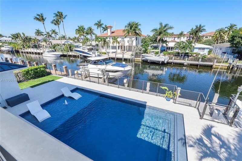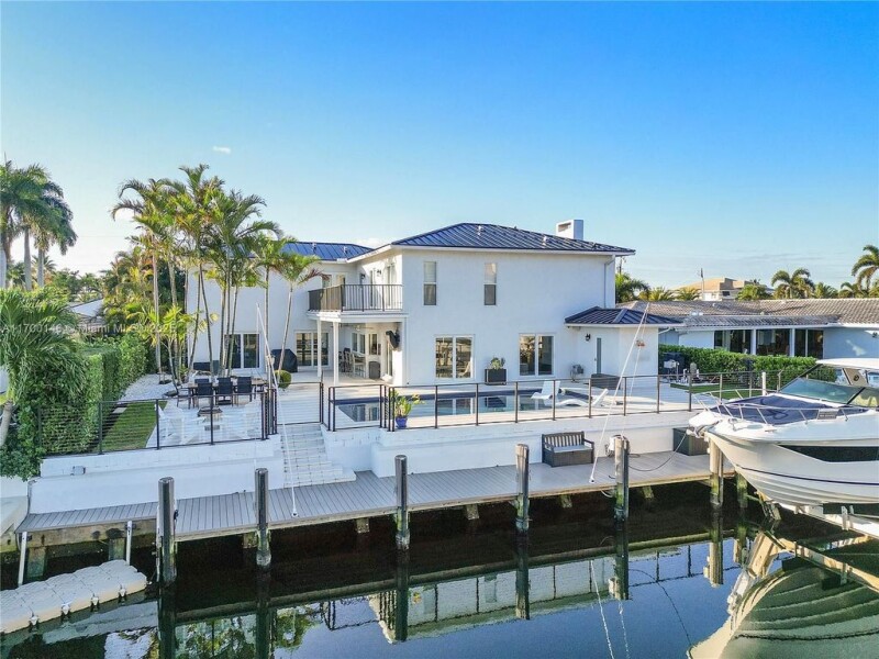 Discover this beautifully remodeled home featuring three en-suite bedrooms, a large versatile den, and an additional bathroom, situated on an exclusive island street, just minutes from Hillsboro and Boca inlets with no fixed bridges. Boating enthusiasts will appreciate the 80 foot composite dock equipped with two 30/50 amp power pedestals and a 20,000 lb. boat lift. This stunning property offers a newer metal roof, high impact windows, updated landscape, a completely renovated pool and patio area, remote blinds, an updated serene 700 gallon Koi pond, a whole house generator, new turf, completely redone veranda on second floor and new surround sound . The chef's kitchen with seamless oversized quartzite Island with storage, top of the line appliances and custom flip out windows.