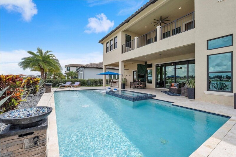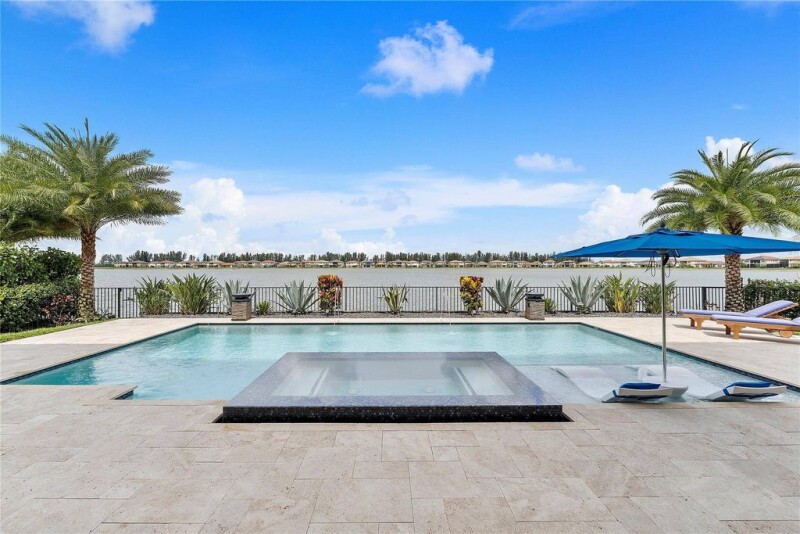 Spectacular sunset views from the most sought-after model in Parkland Bay! This lakefront VOYAGER with over 400K in upgrades, features 5 spacious bedrooms, 6 elegant bathrooms, soaring ceilings and a versatile loft. Upgraded gourmet kitchen, with high-end appliances, is perfect for culinary enthusiasts. An elegant staircase leading to the spacious upgraded balcony overlooking the lake and saltwater pool and spa, with breathtaking views of the sunset. Enjoy the complete poolside kitchen with tropical landscaping and serene lake views. The high-end community offers a state-of-the-art clubhouse and gym, beach entry pool, 2 tennis courts and a basketball court, outdoor events bar, culinary kitchen, banquet room, tot lot and more. Experience the epitome of lakefront luxury. A-rated schools.