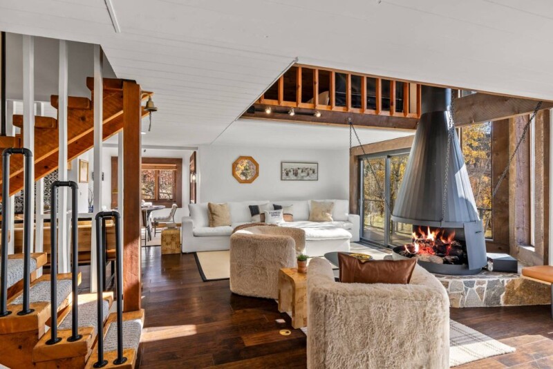 A true ski chalet, fully furnished, with modern updates throughout creating a one-of-a-kind home. The vibes are high in this classic Steamboat “A” frame with 4 bedrooms, 3 bathrooms, 2-car attached garage and 2,566 sq. ft. The main floor of the home has an open concept with a spacious living room, plenty of seating, and a freestanding 2-story fireplace that is the centerpiece and the perfect place to gather. The living and dining are connected to the kitchen which is filled with new appliances, designer tile, and updated cabinetry. The loft off the primary takes advantage of the pitched roof and offers cozy sleeping nooks along with built-in shelving and a beverage area. The primary is a cozy spacious bedroom with 2 closet areas, storage, and the perfect window with a view of the ski area. The primary bath has a soaking tub with a ski mountain view and a newly tiled shower. The other 2 bedrooms are well appointed and both have bathroom access nearby. Downstairs has a gaming/family room and the opportunity to turn it into a lock-off. Floor to ceiling windows open to a deck that surrounds the home and a hot tub with ski area views. The home sits on a ¾ AC duplex lot offering space and privacy to the owner with a large fenced in backyard. Live in a charming ski mountain chalet that has been updated with all the modern conveniences and is located in a coveted ski mountain neighborhood.