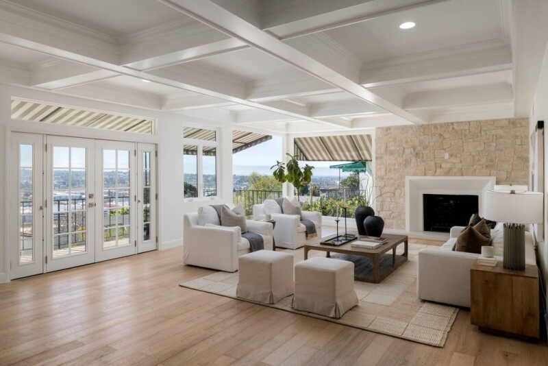 Totally transformed Ranch-style residence exudes relaxed sophistication. Panoramic bay and sparkling city views provide scenic backdrop for spacious indoor and outdoor living areas. Dramatic living room with box beam ceiling, wood floors and stone fireplace seamlessly transitions to elegantly appointed designer kitchen with adjacent dining areas. Entry level floorplan affords opportunity for single-story living with three bedrooms, including ensuite primary, three luxurious baths and stylish laundry room. Lower level with bedroom and bath present opportunities for home office, gym, wine cellar and indoor lounge area off pool and courtyard. This urban oasis is perfectly suited for entertaining or tranquility and also features 4-car parking in addition to solar.
