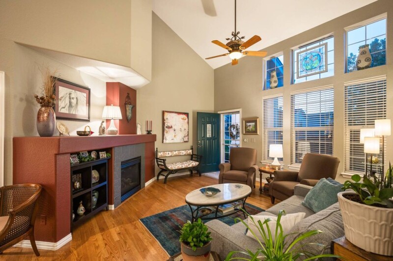 Pride of ownership! Details matter: move right in to this interior located 2-story unit with dual bedroom suites upstairs and a main level den. Very nicely appointed and clean from the walls and ceilings down to the baseboards and trim details. Fantastic wood floors throughout the main level are in great condition. Kitchen cabinets and appliances all in great condition, as well as the patio slider door to the courtyard area and the heated "casita" room beyond. Notice the vaulted ceilings soaring over the main level living and dining areas and cozy up by the gas fireplace. Good storage throughout the kitchen and closet areas. Access to the crawl space is in the hall closet (there are no basements here in Pelican Pointe). Note the dual stair bannisters to help you get to the dual bedroom suites upstairs. Plenty of storage - both bedrooms have a walk-in closet and the primary bath has a luxuriously large soaking tub. Turnkey patio available for when the weather gets warm - furniture, grill and "sail" shades included. Seller installed a direct connect gas line for the grill. This quiet community is gated from 7pm to 7am, and there is guest parking located thrughout the complex for your guests. Get outside and enjoy the small park with the complex, or exit the private gate directly onto Denver's coveted Highline Canal Trail for a quick excursion or a 70+ mile hike! If you'd like more amenities, Pelican Pointe residents have access to a nearby clubhouse, fitness center, outdoor pool, and tennis courts for a small monthly fee in addition to the monthly HOA dues. Located nearby (5 min drive) at the newly rebranded TAVA Waters Apartment Complex, there is also a 60 acre lake with a paved 1+ mile long path around its perimieter. Seller would love to include some furniture for a buyer who may be interested in a more turn-key purchase. Contact the listing agent for more details.