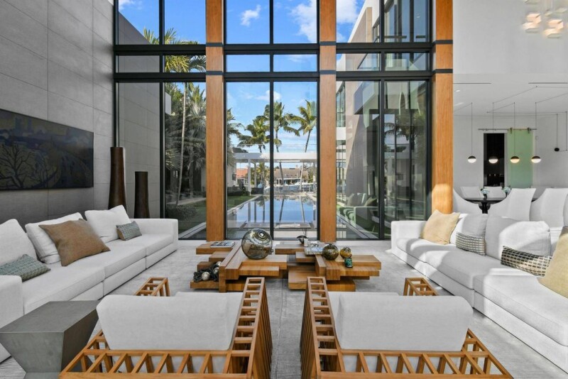 In a league of its own, this architectural masterpiece in Jupiter's prestigious Admirals Cove features a sleek modern design, soaring ceilings, and 100 ft of waterfront with no fixed bridges for quick Atlantic access, making it a boater's dream. Highlights include 5 bedrooms, a luxurious first-floor master suite, VIP guest room, a chef's dream kitchen with Italian Valcucine cabinetry, backlit onyx countertops, and Wolf appliances, exquisite wood and stone finishes, a temperature-controlled wine wall, Crestron automation, and elevator. Step out back and be dazzled by the resort-style backyard, complete with a pool, spa, sundeck, summer kitchen, cabana bath, loggia with retractable screens, a private dock, lift and partial Intracoastal views. Offered furnished--when only excellence will do.