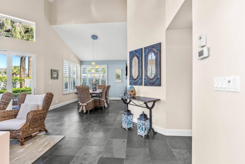 Welcome to Sea Colony's best-kept secret--a fully furnished, ultra-rare 3-bed, 2-full, 2-half bath CBS home with IMPACT GLASS on an oversized corner lot just steps from the sand. Private pool? Check. Exclusive beach gate? Got it. Resort-style amenities? Absolutely. Soaring ceilings, endless natural light, and multiple sliders create a seamless indoor-outdoor feel. The renovated kitchen features bar seating, a breakfast nook, and flows into the main living areas. Out back, a tropical paradise awaits--lush landscaping, multiple seating areas, and a cabana bath-- keeping sandy feet outside. The primary suite overlooks the pool with dual custom walk-in closets and a spa-like bath featuring a soaking tub, dual vanities and separate shower. This is the coastal lifestyle you've been waiting for.