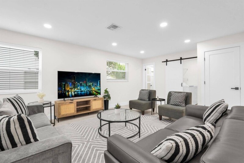 A rare gem in Delray Beach--two fully remodeled homes on one lot, offering exceptional flexibility for those seeking luxurious living or multi-generational accommodations. The Main House features 1,780 sf, w/ 3 spacious Bedrooms, a stylish Den, and 2.5 beautifully updated Bathrooms. The Guest House provides an additional 1,157 sf, boasting 3 Bedrooms, 1 Bathroom. Both homes come fully furnished and turnkey, ideal for immediate move-in or flexible rental opportunities.Each home is designed with modern convenience, featuring hurricane impact windows and doors, private entrances, dedicated laundry rooms, and gourmet kitchens with granite countertops and high-end stainless steel appliances. Upgraded A/C units, water heaters, smart locks, and separate utility meters for electricity and.