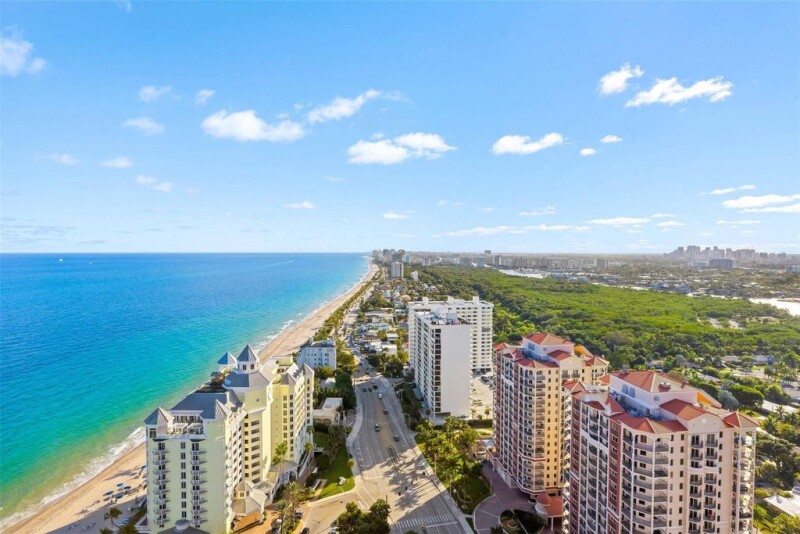 Milestone & SIRS inspections completed & passed! Enjoy one of SoFlo’s most extraordinary PHs- 30th flr masterpiece at The Palms Condo in Ft Lauderdale. 360-degree views w/8 terr, framing breathtaking ocean, ICW & city skyline views. Designed gracious entertaining & serene relaxation w/living room, bar & dining area create an effortless sense of space. The kit & breakfast area provide mesmerizing floating City & ICW views. Retreat to the oceanfront primary suite - a spa-like bath & 2 terr invite ultimate tranquility. 2 VIP guest suites ensure luxury at its finest. 5-star resort amenities - beach service, 2 pools, 5 star gym, tennis, squash/racquetball ct, a lg Club Room for unforgettable gatherings. 24-hr valet & gated entrance for privacy & security. Live at the intersection of sea & sky!.