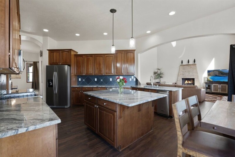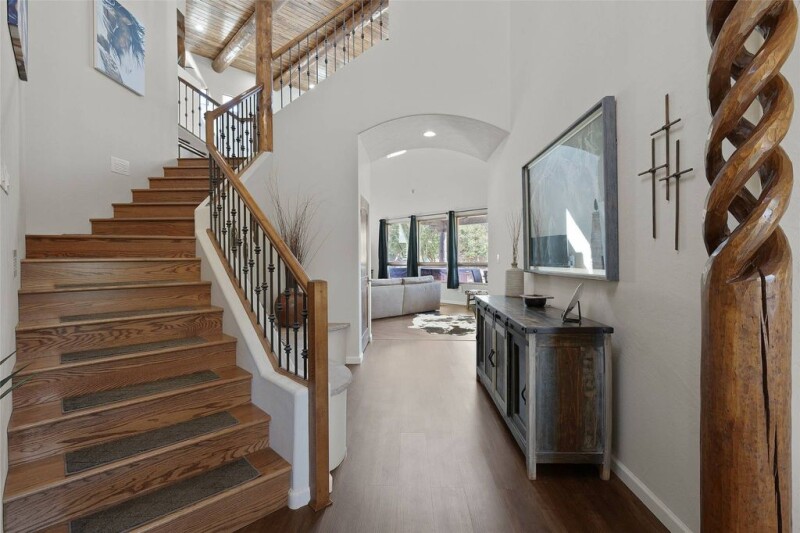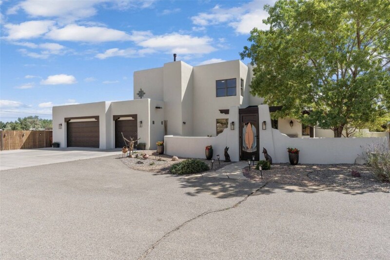 Beautiful Corrales 4BR home in a terrific and private location. The gated entry invites you into this recently remodeled two story home, a true entertainers delight. 3405sf, two living areas, formal dining, fabulous kitchen w/granite, island, pantry, rich cabinetry, and a dining nook. A dramatic greatroom w/fireplace, high ceilings w/T&G viga ceiling, family/media room, plus a 4thBR/workout room on main level next to a 3/4 bath. Oversized 3 car garage w/storage. The owner suite is upstairs, private, views, fireplace, east deck, large bath, 2 vanities,tub w/jets, shower, 2 walk in closets. Two generous BR w/Jack & Jill bath. Laundry room. Home sits on one full acre to enjoy the portal, ramada, lawn, fruit trees & privacy. A great place to call home.