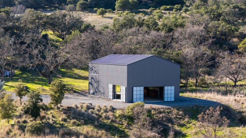 This serene property, which spans 23.77 acres and borders the expansive 3,800-acre Kenzo Estate, offers vineyard views, complete privacy, gentle terrain, and exceptional infrastructure. The two-story barn, which covers 6,400 square feet, is constructed from high-quality steel and built by skilled craftsmen. The unfinished 4,400-square-foot home, designed by Marissa Periana, draws inspiration from the iconic concepts of Mies van der Rohe, showcasing the beauty of steel and glass architecture from the early 1950s. The updated plans feature an expanded garage and adds 3,000 square feet to the home, increasing its total footprint to 8,000 square feet. The design emphasizes transparency in the glass, creating a seamless connection with nature while providing climate control and keeping insects at bay. Artist renderings related to completing the home have been provided in the video. An erosion permit is included for a five-acre vineyard, and the current investment in infrastructure alone exceeds the asking price. The warm summer days in Wooden Valley are cooled by dramatic fog banks that pour over the palisades and mid-afternoon breezes, which can produce temperatures as much as 10 degrees lower than the Napa Valley average, resulting in a long growing season. *First photos are Artist Renderings of completed home*.