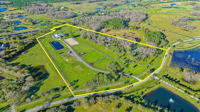 The opportunities are endless with this solid CBS 7,856 sqft structure. Whether you envision converting part or all of the barn, expanding the current living space to create a larger residence, or adding a separate standalone estate home altogether, this property offers remarkable flexibility. Nestled between Jupiter and Hobe Sound in the exclusive gated community of Trailside with underground utilities, this 21-acre estate offers privacy, luxury, and opportunity amidst a rapidly growing area.Crafted in 2019, the structure features a metal roof, all impact windows and doors, a thoughtfully designed home, a 13-stall center-aisle barn, and ample utility and storage space. Panoramic views of the entire property from the second-story, it boasts 10' ceilings, a full kitchen, an open living.
