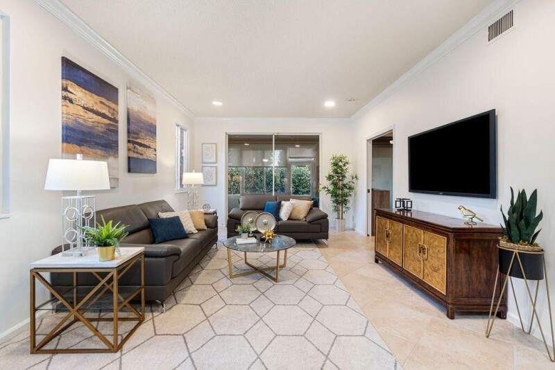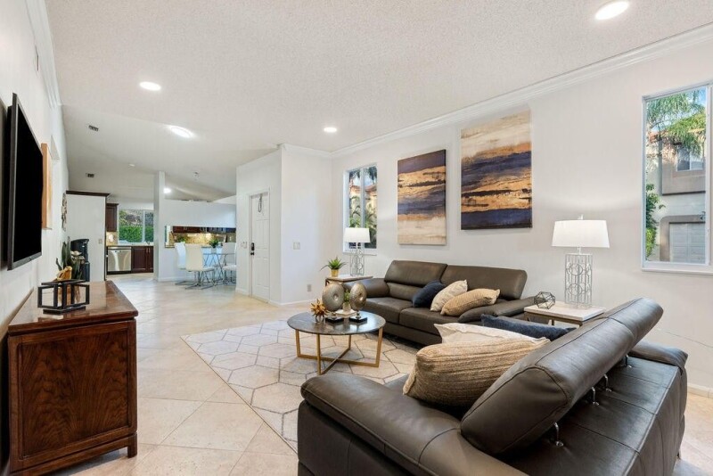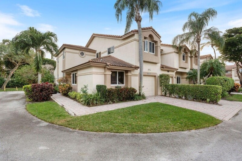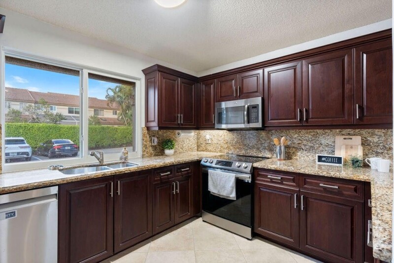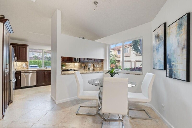 Experience Luxury and Modern Conveniences with this beautifully upgraded, rarely available corner-unit townhome in the prestigious Boca Pointe community. Boasting three bedrooms and three full bathrooms, this spacious residence includes a highly sought-after first-floor bedroom and bath, offering convenience and versatility.The home features a charming garden view, an attached one-car garage, and plenty of open parking. Recent upgrades include impact windows throughout for storm protection and peace of mind, new interior paint, a brand-new AC unit, 2022 appliances and a blend of ceramic tile, luxury vinyl flooring, and new carpeting for a modern yet cozy touch. The sunroom seamlessly blends indoor and outdoor living.