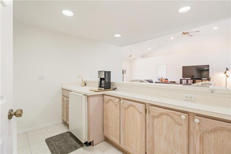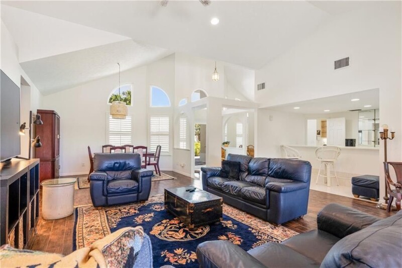 Nestled on a coveted corner lot with breathtaking long lake views, this architecturally exciting home is ready for you to personalize to your taste. Vaulted & tray ceilings create an airy elegance, while arched windows & decorative plant shelves add timeless charm. The heart of the home features a gourmet kitchen with stainless steel appliances, a gas range, and a large wet bar--perfect for entertaining. The primary suite boasts a spa-like bath with double sinks, a soaking tub, and a vast walk-in closet. Step outside to a screened, heated pool and spa, uniquely shaped for ultimate relaxation.