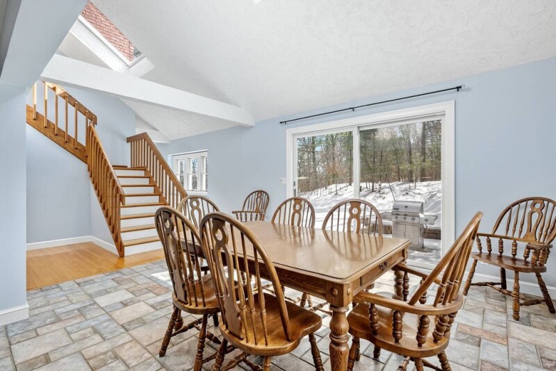 Step into a world of sleek sophistication and modern comfort in this stunning 4-bedroom, 3.5-bathroom contemporary home. Designed with an eye for clean lines and open spaces, this residence offers a unique blend of style and functionality, perfect for today's discerning homeowner. From the moment you enter, you'll be captivated by the airy ambiance and natural light that floods the spacious living areas with vaulted ceilings, plenty of skylights, and a large slider. The gourmet kitchen, a chef's delight, boasts a generous island containing the range and a sprawling bar counter, ideal for gathering with family and friends. The adjacent dining area flows seamlessly, creating an effortless space for entertaining. The finished lower level can be used for inlaws, au-pair suites, or game room The patio outside allows you to be near the house and the saltwater pool while enjoying the privacy of the wooded backyard—a must-see for the buyer looking for a home that is not cookie-cutter.