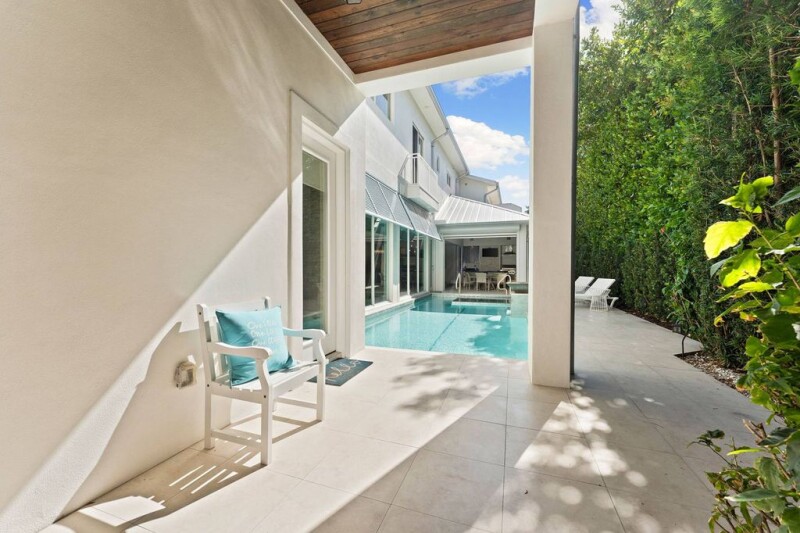 In the heart of Old Naples, this exceptional home boasts a prime location just seven houses from iconic Naples Beach, while being moments from the charm of Fifth Avenue South. Property has remained high and dry since being built in 2017. Designed by the acclaimed MHK Architecture, this residence captures the essence of the Florida lifestyle with over 5,000 square feet of seamless indoor and outdoor living. Lush landscaping surrounds the pool with fire and water features, a sunken spa and an electric screened lanai. Every detail exudes craftsmanship, from the custom ceilings to the modern kitchen to the naturally aged wood floors. Expansive primary suite, complete with walk-in closets and an elegant main bath. Modern conveniences include an artisan, temperature-controlled glass wine wall, custom-designed elevator, Kohler backup gas generator, impact-resistant windows and doors, and natural gas access throughout. For guests, a private suite with its own entrance and spacious balcony provides a luxurious retreat.