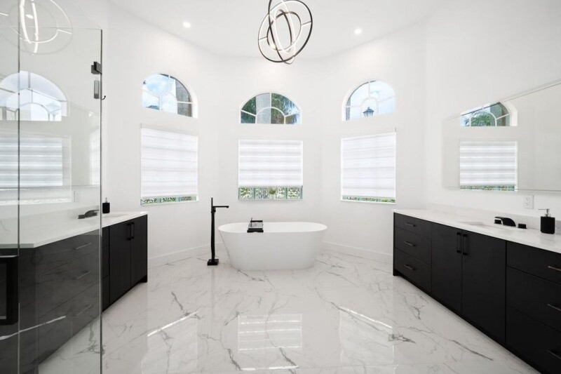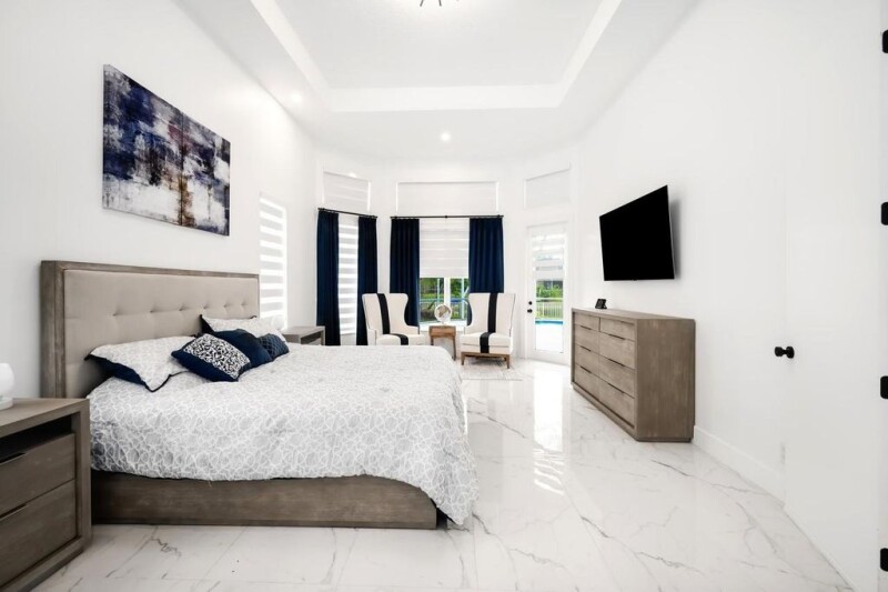Sparkling 4 Bedroom plus Den Lakefront Pool Home, beautiful Finishes, Everything NEW, A Rare Find! NEW Roof 2022, NEW Floors throughout, Gourmet Kitchen w/Modern Gray/White Cabinets, Reverse Osmosis Water system, Beautiful White Quartz Countertops, Kitchen opens to VERY Spacious Family Room, Triple Split Bedroom Plan, All Bedrooms X-Large Big Walk in Closets, LED Lighting Fixtures. Gorgeous NEW Baths (3.5). Modern Gray/White themed Finishes / Bronze Fixtures throughout this home. Spectacular Private Screened Lakefront Pool, DAZZLES! NEW Exterior lighting. Expansive Lake View from All Living areas. Pretty Pool Patio for Entertaining Day or Night. Lake w/Boat Access. Huge 3 Car Garage with Paver Driveway, Parking for 6 Cars. Nothing to do but Enjoy! A beautiful home you will be Proud to Own!.