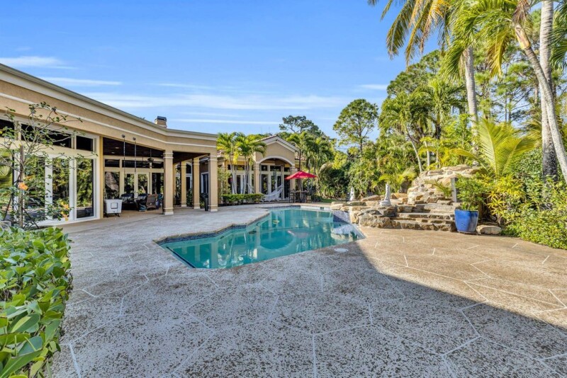 Welcome to your private paradise in Jupiter, FL, located in the beautiful Martin County! This stunning property features a main house with four bedrooms, three and a half baths, and a separate one-bedroom guesthouse for visitors. Enjoy your outdoor oasis with a pool and jacuzzi on a spacious 1.7-acre lot. The main suite offers a luxurious bathroom and two walk-in closets, while the Jack and Jill bedrooms share a full bath. Additional highlights include a built-in entertainment center, an interior bar with an ice maker, and a large covered patio perfect for outdoor gatherings. Experience the best of Florida living in this exquisite home!.