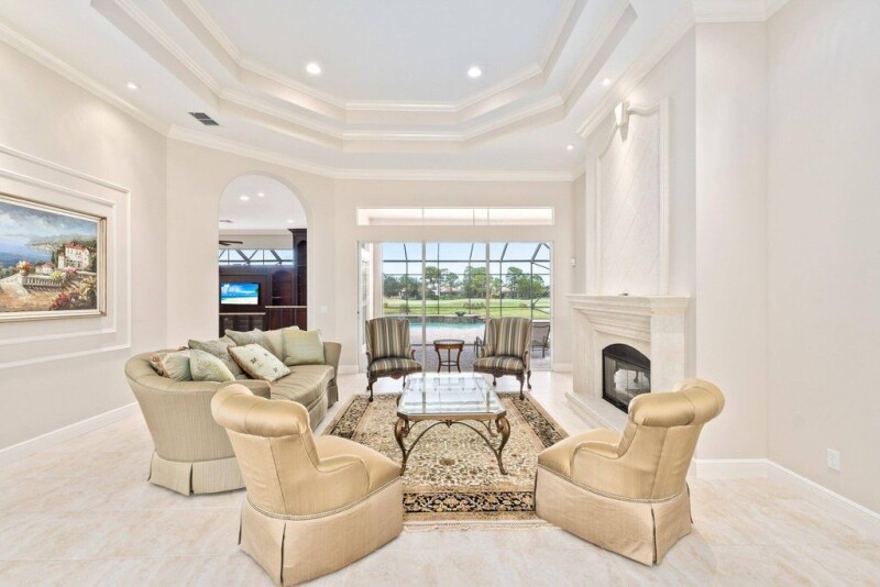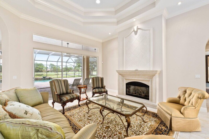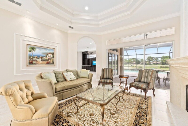 Located in the most prestigious neighborhood in PGA Village this 4BR plus office 4.5 bath 5 car garage mansion radiates luxury. Spacious open floor plan with custom moldings/trim has formal living and dining rooms and huge eat in gourmet kitchen with a center island, and a breakfast bar. Massive family room has a full wet bar, plus a built in entertainment center perfect for entertaining. Separate MOVIE THEATER has 9 seats and top of the line audio/visual for the ultimate theater experience. Guest suites are all large, and have access to bathrooms. Over 3100 SF of outdoor space with a newer built in summer kitchen and huge heated pool and spa with panoramic views of the Dye golf course and lake. Detached mancave has a 573 bottle wine cellar and card room. Whole house generator.