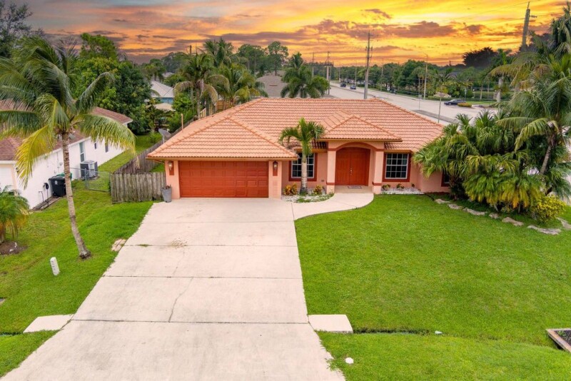 Large Mediterranean Style 4/3/2 CBS home on a corner with NO HOA! This Award winning floorplan incudes an independent in-law suite with private bathroom and entrance. Some of the nicest features of this home includes, tiled roof, ceramic tiles throughout, granite counter tops, SS appliances, screened covered lanai with outdoor patio, irrigation system, gutters all around, fenced backyard with above-ground swimming pool with pump and beautiful palm trees to enjoy the outdoors all year round! Great neighborhood conveniently located within walking distance to Gatlin Blvd, I-95, Banks, Walmart and Tradition shopping areas...schedule a tour today! *** This property comes with a 2-1 rate buydown, reducing the buyer's interest rate by 2% for the first year of their loan and 1% the second year.