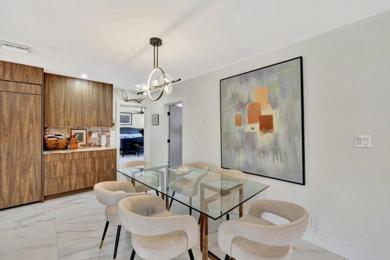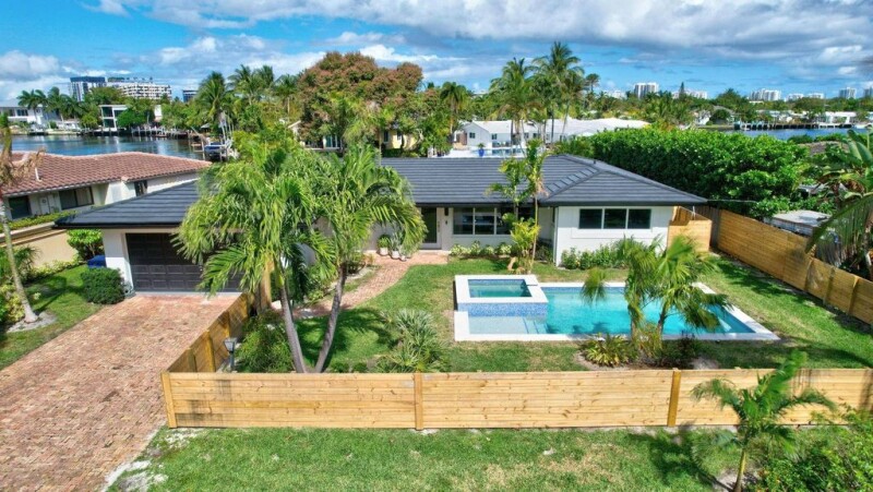 WILTON MANORS WATERFRONT PARADISE 2024 REBUILD ~ Tranquil long river views down multiple stretches of the North Fork of Middle River, including seawall and dock. Offering approx. 75' of frontage, this executive home is completely remodeled/reimagined. Offering 4 bedrooms/2 baths, new swimming pool with heated spa, and spacious fenced yard with irrigation. Chef inspired gourmet kitchen with exotic stone counters and backsplash, premium appliances, hidden pantry transitions you into a well organized utility room. The oversized 24"x48" exotic Calcutta Gold like Porcelain flooring throughout creates a bright and rich complement to the interiors. Extensive custom lighting in all living areas. Existing storage areas are efficiently built out, attached two car garage.