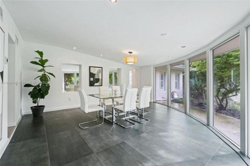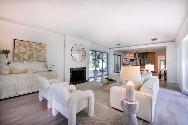 4 bedroom, 3 full bath Miami Shores home. This home is architecturally significant, not your average ranch or box-style home. Fenced yard has a covered patio, lush landscaping, and a private pool area, great for entertaining. Hurricane impact windows allow the outside in with lush green views from every window. Big open living spaces, the kitchen is open to the living room with a fireplace. Giant family/media room, great for a big screen or projector with surround sound. The primary bedroom has a spa-like bath and a walk-in closet the size of the average bedroom. There is one bedroom upstairs that has a huge closet and ensuite bath. Newer roof, updated plumbing and electric, 3 zones of a/c, and a natural gas hookup. Parking in the front and back. Inside laundry with laundry tub.