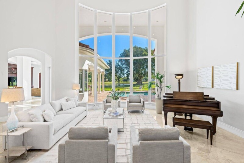 Magnificent custom-built home on one of the best park and lake lots in the very desirable Boca Bath and Tennis Club. Stunning views through the floor to ceiling impact windows. 22 foot ceilings in the entry foyer and living room with expansive views of the park and main lake. Cooks kitchen opens to beautiful family room with views of the park, private salt water pool and spa. Primary suite has amazing view and two walk in closets, marble bathroom with two vanities, whirlpool tub, walk in shower and separate water closet. Guest suite downstairs plus office and media room, walk-in pantry, two 1/2 baths and stunning formal dining room. Upstairs there are 4 bedrooms, two marble bathrooms, huge loft and walk-in closets in every room. 3 car garage. Well built and well maintained. Must see!.