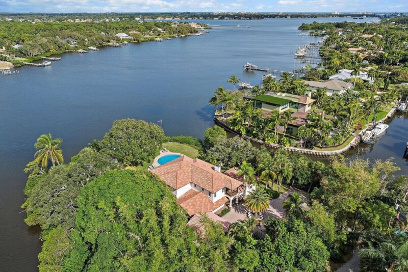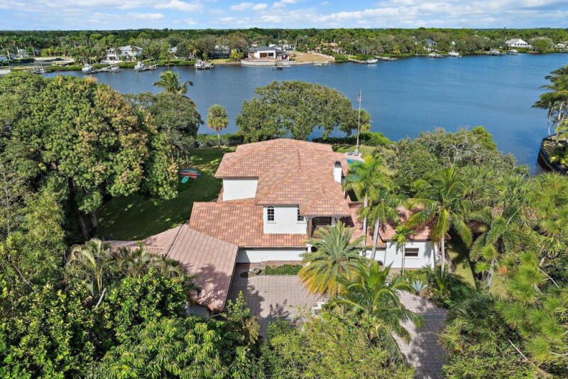 Discover an extraordinary waterfront opportunity--a once-in-a-lifetime property on .82 acres with an impressive 551 feet of serene waterfront. This rare parcel is enveloped by expansive water views and includes a protected canal, offering exceptional docking for your boating lifestyle. Its prime location near the Jupiter Inlet ensures easy access to beaches and sandbars, free of fixed bridges. The property's privacy is unparalleled, with mature fruit trees beautifully accenting the lush outdoor spaces. Enjoy a secluded oasis that blends natural beauty and effortless access to South Florida's pristine waterways.The home is an entertainer's paradise with breathtaking water views from nearly every room! This spacious 6-bedroom, 5-bath residence offers ample space for family and guests.