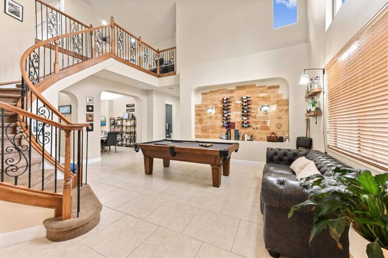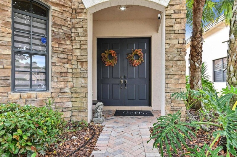 SELLER OFFERING $25,000 CREDIT TO BUYER. Experience the of luxury living in this stunning Mediterranean pool & lakefront estate, nestled within the prestigious gated community of Versailles in Wellington. This exceptional home offers 5 bedrooms, an office/den, 3.5 baths, and a spacious loft area, providing ample space for both relaxation and entertaining. A grand entrance welcomes you with soaring ceilings and an elegant spiral staircase leading to the upper level.