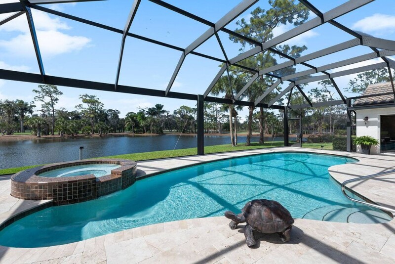 Full golf membership is available with this expansive and meticulously maintained Eagle Creek estate home, ideally designed for entertaining and multi-generational living. This exceptional residence offers an abundance of space and luxurious features throughout, providing privacy and open-concept areas. The bright and flowing layout showcases a beautiful kitchen, featuring luxury finishes and premium appliances, seamlessly opening to the dining and living areas, ideal for entertaining or intimate gatherings. Additionally, you will find three generously sized bedrooms, 2.5 baths and a large study with wraparound windows, offering serene water and golf course views. The incredible owner's retreat includes a welcoming bedroom, attractive bath, ample closet space and a private sitting room with tranquil vistas, a haven for relaxation. Guests will feel right at home in the private guest suite, which boasts its sitting room, a spacious bedroom, a well-appointed bath and two large closets. The third guest bedroom is thoughtfully situated for privacy with easy access to a nearby luxurious bath. This home is on an oversized .41-acre lot, showcasing breathtaking water and golf course views. Step outside to enjoy these stunning vistas and famed Naples sunsets from the inviting covered lanai or take a dip in the sparkling swimming pool and spa, surrounded by a marble pool deck and panoramic screen enclosure. Even better, this home features a newer tile roof, two new HVAC systems and electronic storm screens on the lanai. This one-of-a-kind property is the epitome of country club living. Eagle Creek's main clubhouse just underwent a complete remastering, transforming it into one of the finest clubhouses in Naples. Buyers have the opportunity to lock in the golf membership rate before it increases to $125,000 on June 1. Ready for its next owner, this home promises a lifestyle of elegance, relaxation and entertainment. Please note that the total HOA costs listed on external sites are inclusive of master HOA, estate home HOA, and club membership dues.