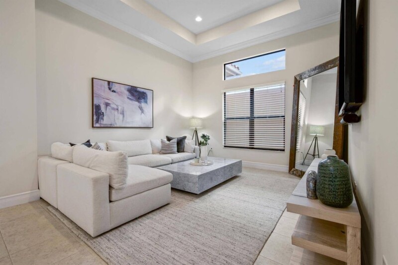 Welcome to 16578 Ambassador Bridge Road, a modern oasis nestled in the The Bridges. This stunning Paseo Model with 12 foot high ceilings and crown molding offers an impressive 3,249 square feet of thoughtfully designed living space, set on an expansive 8,146 square foot lakefront lot. With 4 spacious bedrooms and 3.5 luxurious bathrooms, this home perfectly balances comfort and style. Step inside to discover a seamless blend of contemporary elegance and functional design. The open-concept layout features a formal dining, living room/den and family room with wet bar. The chef's kitchen is equipped with dual islands, stainless steel appliances, Wolf gas cooktop, granite countertops, double wall ovens and a convenient eat-in area. The spacious primary suite offers breathtaking lake views,.