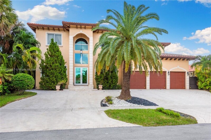 A waterfront Spanish Villa where refined and luxury living meet. This 5,700 sq ft residence offers elegance & comfort at every turn. Soaring 20-foot ceilings and French doors in the grand entry provide stunning views through the home to the pool and beyond, seamlessly blending indoor and outdoor spaces. The home features five bedrooms, four baths, expansive living and dining areas, a chef's kitchen with water views, a Game room, and a light-filled art studio. A car lover's 700+ square foot air-conditioned garage with ample storage and parking for 5+/- cars. This extraordinary property is not just a home, it's a masterpiece, offering a rare blend of luxury, comfort, and privacy in one of the most sought-after communities. 10 Minutes to the Beach and close to all the best schools in Miami.
