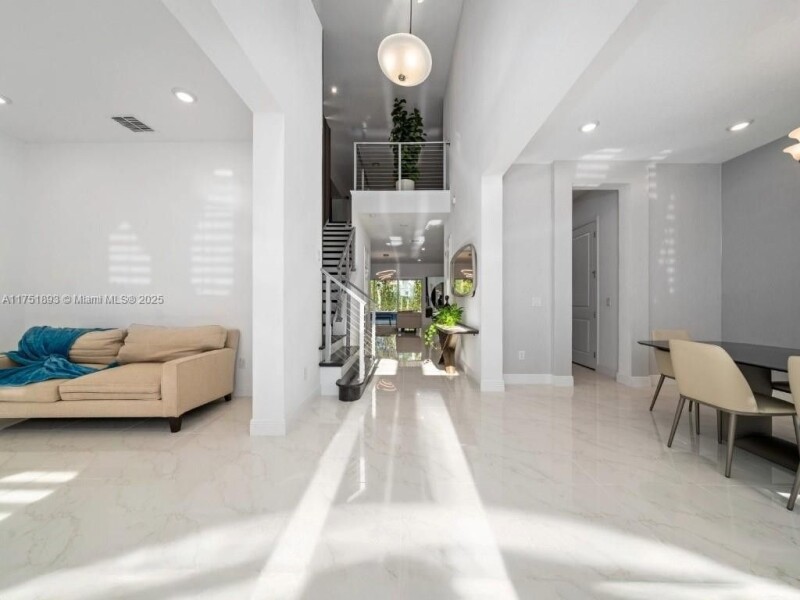This luxurious 5-bedroom, 4.1-bathroom modern minimalist home features an open-concept design with top-tier finishes. The first floor includes a bedroom with an en-suite bathroom. Key features include a spacious kitchen with quartz countertops, high-end appliances like a Sub-Zero fridge, Miele dishwasher, custom cabinets, and a walk-in pantry. Two family rooms, a library, a private office, and a game table add to the space. Design highlights include textured wall panels, smooth walls, and luxury LED lighting. Outdoors, enjoy a pool with LED lighting, a pergola with an outdoor kitchen, and lush landscaping. Additional perks include a coffee station and a three-car garage.