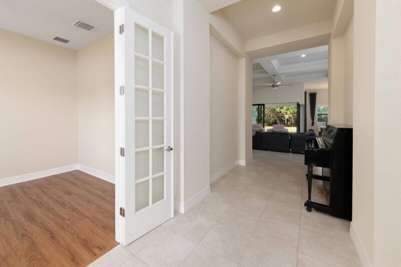 Copperleaf; a prestigious community in Palm City, known for its beautiful homes, tranquil surroundings, and upscale communities. Amenities offered are gated entrance, lush landscaping, community pool, fitness center and walking trails. Conveniently located near I-95 and the turnpike with top rated schools, shopping, and fine dining. This magnificent 4/3/3 has paved drive way, tile roof, wide foyer, large living room and long kitchen island; ideal for hosting. Tiles throughout living area and sturdy laminate in the bedroom. High ceilings, 36 in cabinets, porcelain countertops, stainless steel appliances, elegant lightings and so much more. Spacious primary bedroom with huge walk-in closet, dual vanity, separate shower and tub. Situated on over half acre lot with plenty of room for pool.
