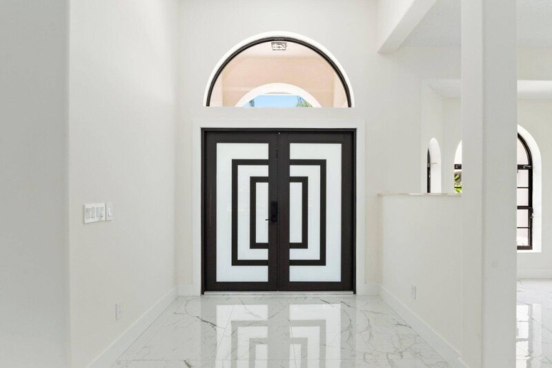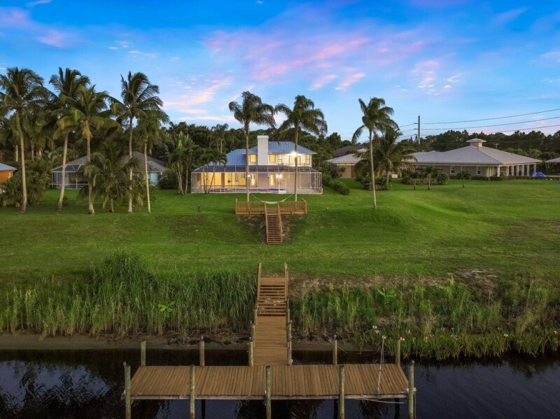 Nestled in the exclusive gated community of Osprey Ridge, this spectacular waterfront masterpiece has been completely remodeled to perfection. A new metal roof and two new AC units ensure comfort and longevity. Step through custom double doors into an open-concept design adorned with stunning 48x24 porcelain tile. The heart of this home is the chef's kitchen, featuring a 15x5 quartz island, high-end cabinetry, and top-tier appliances. A separate bar with a wine cooler enhances the entertainment experience. The family room, highlighted by a coral wall and fireplace, exudes warmth and elegance. Outside, a covered travertine patio leads to a newly resurfaced screened-in pool and spa. Situated on over half an acre with breathtaking water views, enjoy serenity on your private dock and party d.