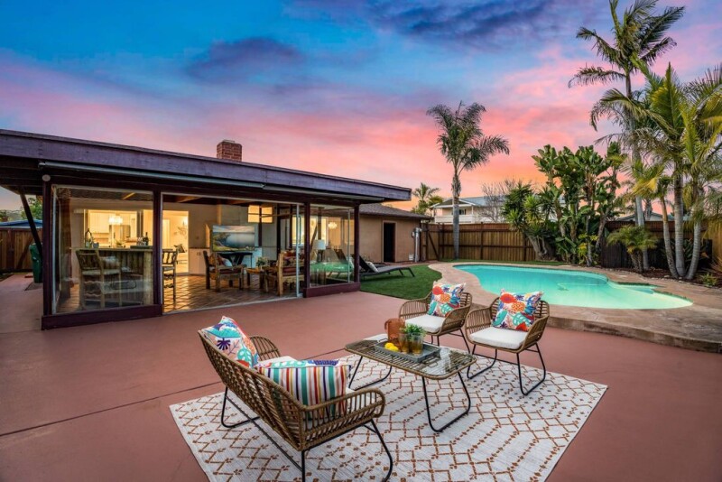 The total square footage includes the large sunroom(permit unknown). See floorplan drawing. Welcome to your dream home in the sought after Bay Ho neighborhood of 92117, offering the perfect convenient lifestyle. This single level home sits on a 7,000 sq.ft. baseball diamond shaped corner lot which gives ample opportunity to build out additional sq.footage. Featuring 3 bedrooms, spacious living/dining area with fireplace, kitchen, and sunroom. This home offers an exceptional indoor-outdoor living experience. Brand new never used gas furnace with new ducting! The sunroom is bathed in natural lighting and serves as a versatile entertaining space/ TV room that seamlessly extends into your tropical backyard oasis with a beautiful pool. Whether you envision lively summer BBQs, tranquil mornings with your coffee, or fun-filled poolside afternoons, this outdoor space offers endless possibilities. Enjoy the convenience of an unbeatable location! Easy access to beaches, Clairemont Town Square, Downtown San Diego/airport, Alcott Park and Elementary School, hiking trails, and the vibrant coastal lifestyle. Just minutes from the 52, I-5, and 805 freeways. Don't miss the opportunity to own this incredible home in one of San Diego’s most convenient neighborhoods.
